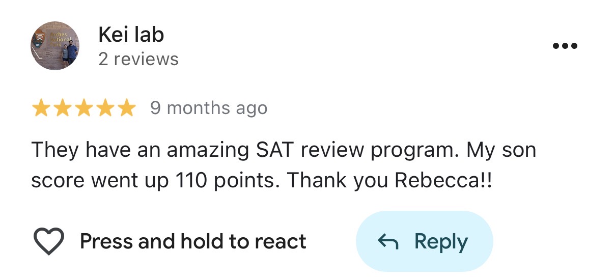 My son has taken the SAT several times and wasn't able to bring his score up by studying on his own. With Rebecca's help he was able to improve 110 points. Highly Reccomend.